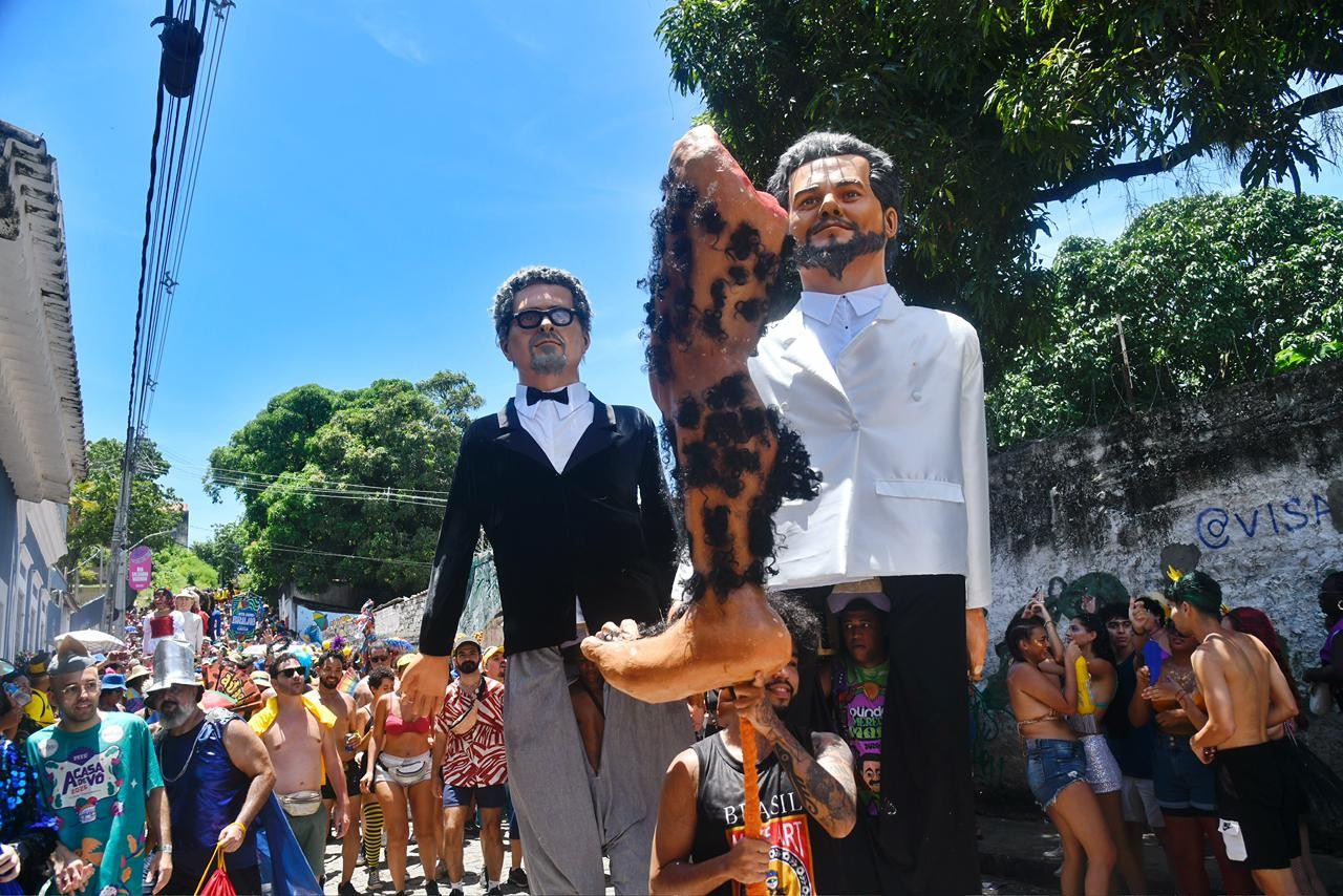 A perna cabeluda, Wagner Moura e Kleber Mendonça Filho no desfile de bonecos gigantes em Olinda, nesta segunda (16)